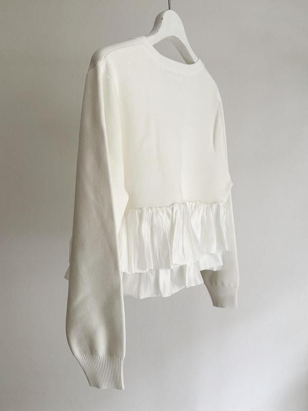 ウェストのペプラムデザインが特徴的なニットカーディガン。