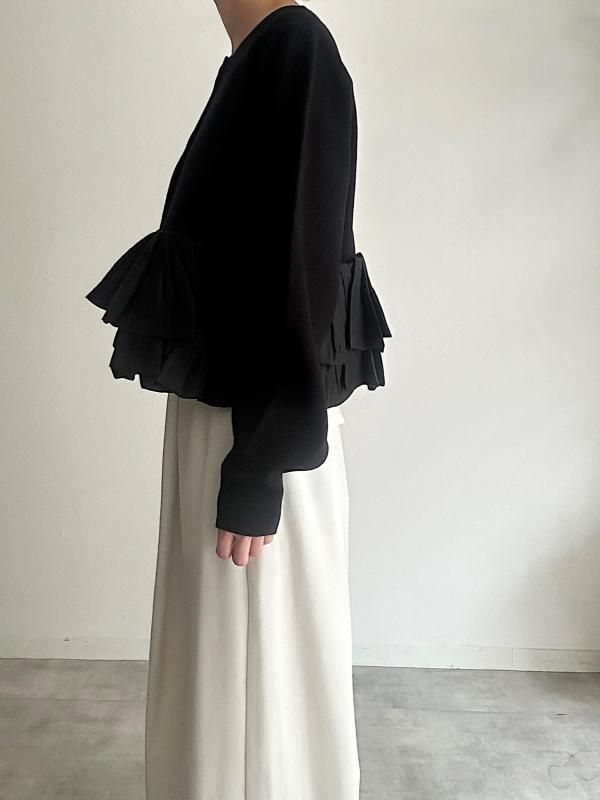 デコラティブなペプラムデザインで甘すぎないモードな仕上がりに。